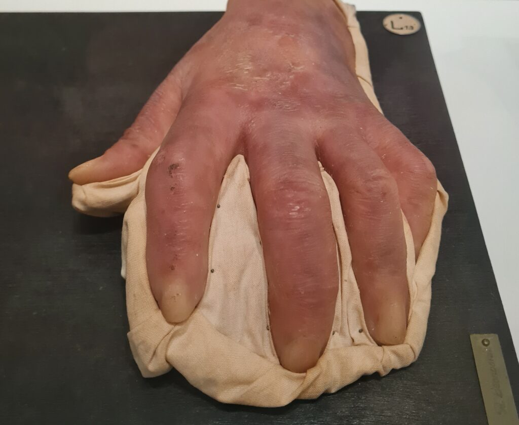Gut dokumentiert ist auch die Geschichte eines 19-jährigen Patienten, bei dem eine Autoimmunerkrankung diagnostiziert wurde. Als sich der junge Mann in die Klinik begab, um medizinische Hilfe zu suchen, wurde nicht nur seine Erkrankung erkannt und behandelt. Der behandelnde Arzt entschied sich auch dafür, eine Wachsmoulage seines Arms anfertigen zu lassen, um das Erscheinungsbild dieser ungewöhnlichen Erkrankung festzuhalten. Diese Moulage wurde in die Sammlung aufgenommen. Sie datiert auf das Jahr 1927 und trägt zur dokumentierten Geschichte der medizinischen Praxis bei.