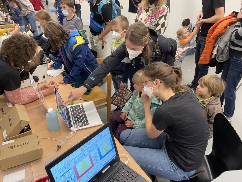 Unter den Besucher*innen waren zahlreiche Familien mit großen und kleinen Kindern, bei denen die Mitmachexperimente besonders beliebt waren. Viele Kinder sammelten fleißig Stempel an den verschiedenen Stationen und freuten sich am Ende über ihren Sinnesforscherungspass und ein kleines Geschenk. Unter den Besucher*innen waren auch Studierende und Senior*innen, die sich vor allem für den Bereich „Altern mit allen Sinnen“ interessierten.