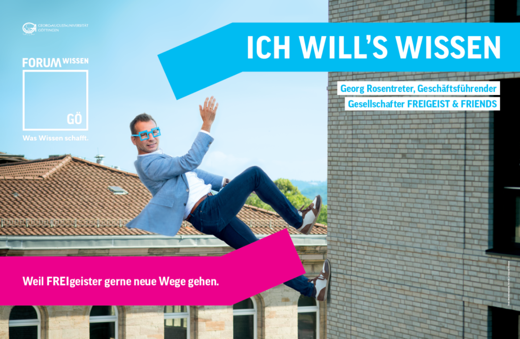 Diese tragen nun auch ein Erlebnisführer aus dem Harz, eine Schulleiterin aus Hann. Münden und ein Hotelmanager, der weit über die Region hinaus bekannt ist: Christian Barsch, Heidrun Korsch und Georg Rosentreter sind es, die auf den Billboards in Göttingen und Südniedersachsen für die „Marke Forum Wissen“ stehen. Wir sind neugierig und wollten wissen, was die neuen Botschafter antreibt, sich für das Projekt der Universität Göttingen zu engagieren.