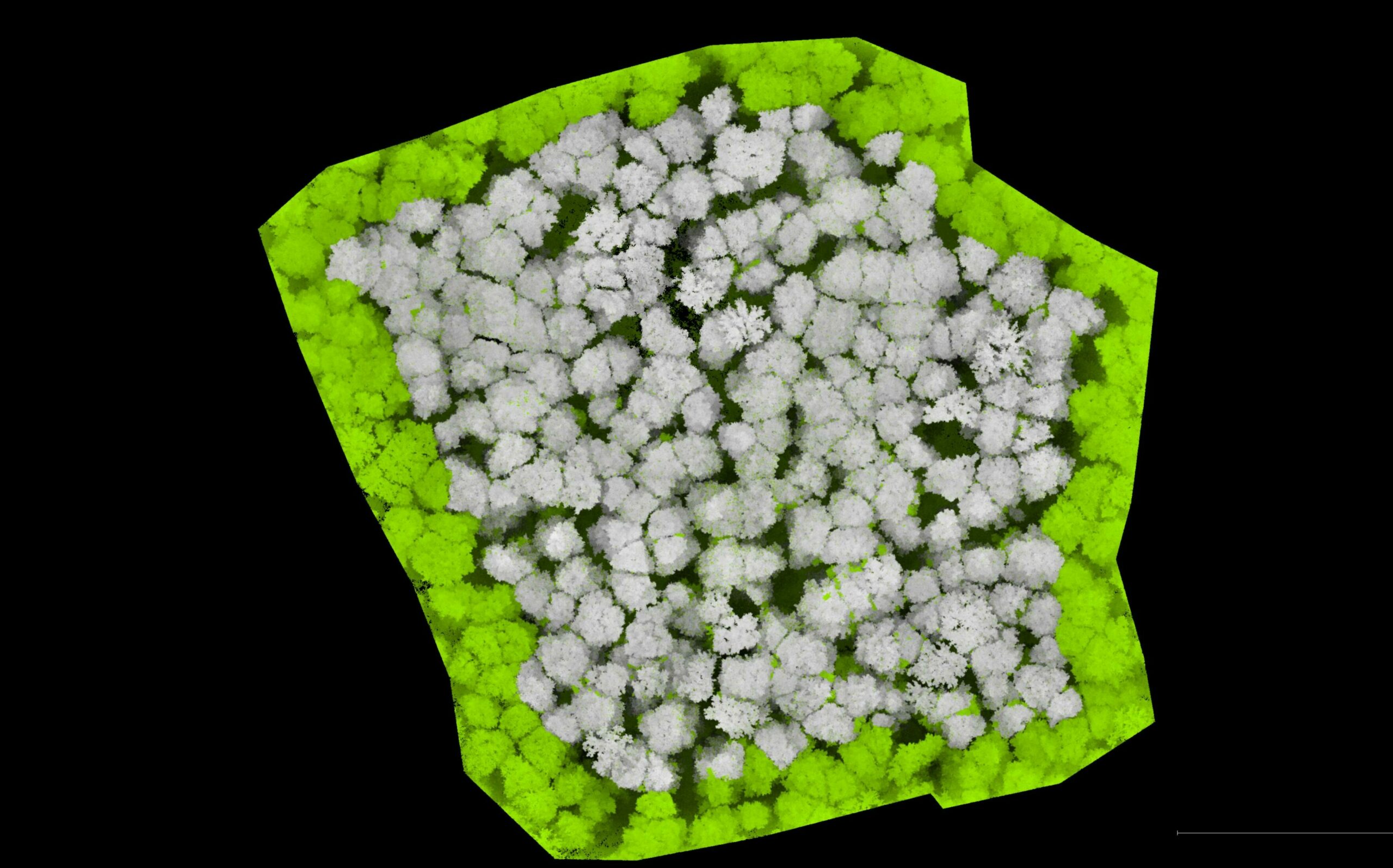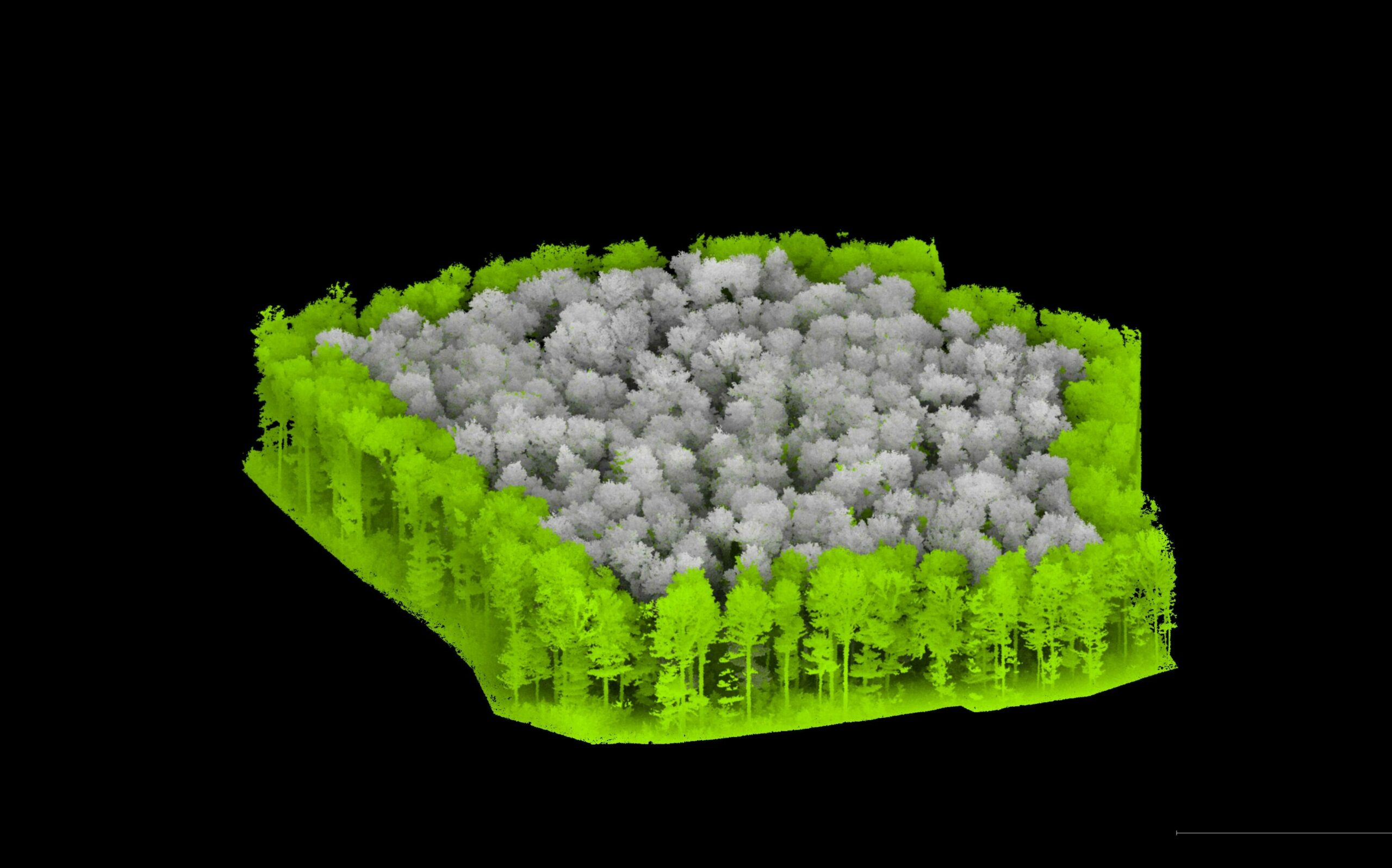 Moderne Waldforschung basiert auf digitalen Methoden. 3D-Laserscan- Technologie erzeugt digitale Abbilder des Untersuchungsgebiets.