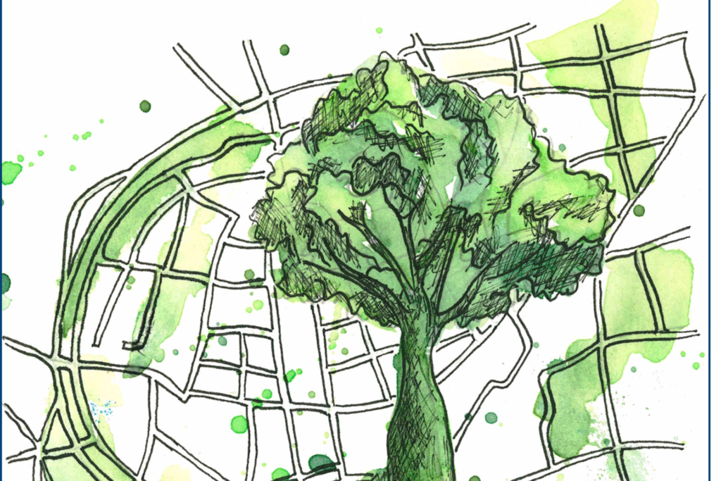 Studie zu studentischen Erholungsräumen in Nähe des Zentralcampus, Aquarell auf Papier, 2023. Bildrechteinhaber*in: Tabea Marie Eck