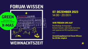 Erstmals feiert das Forum Wissen den Beginn der besinnlichen Jahreszeit mit einem „Green x-Mas“, einem Weihnachtsmarkt der ganz besonderen Art: Nachhaltige Initiativen präsentieren