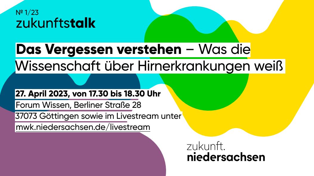 Einen Einblick in die aktuelle Erforschung neurodegenerativer Erkrankungen und wollen damit Mut machen. Anschließend diskutieren sie gemeinsam mit dem Publikum vor Ort und im Livestream. Der 1. Zukunftstalk wird moderiert von Prof. Metin Tolan, dem Präsidenten der Georg-August-Universität Göttingen.