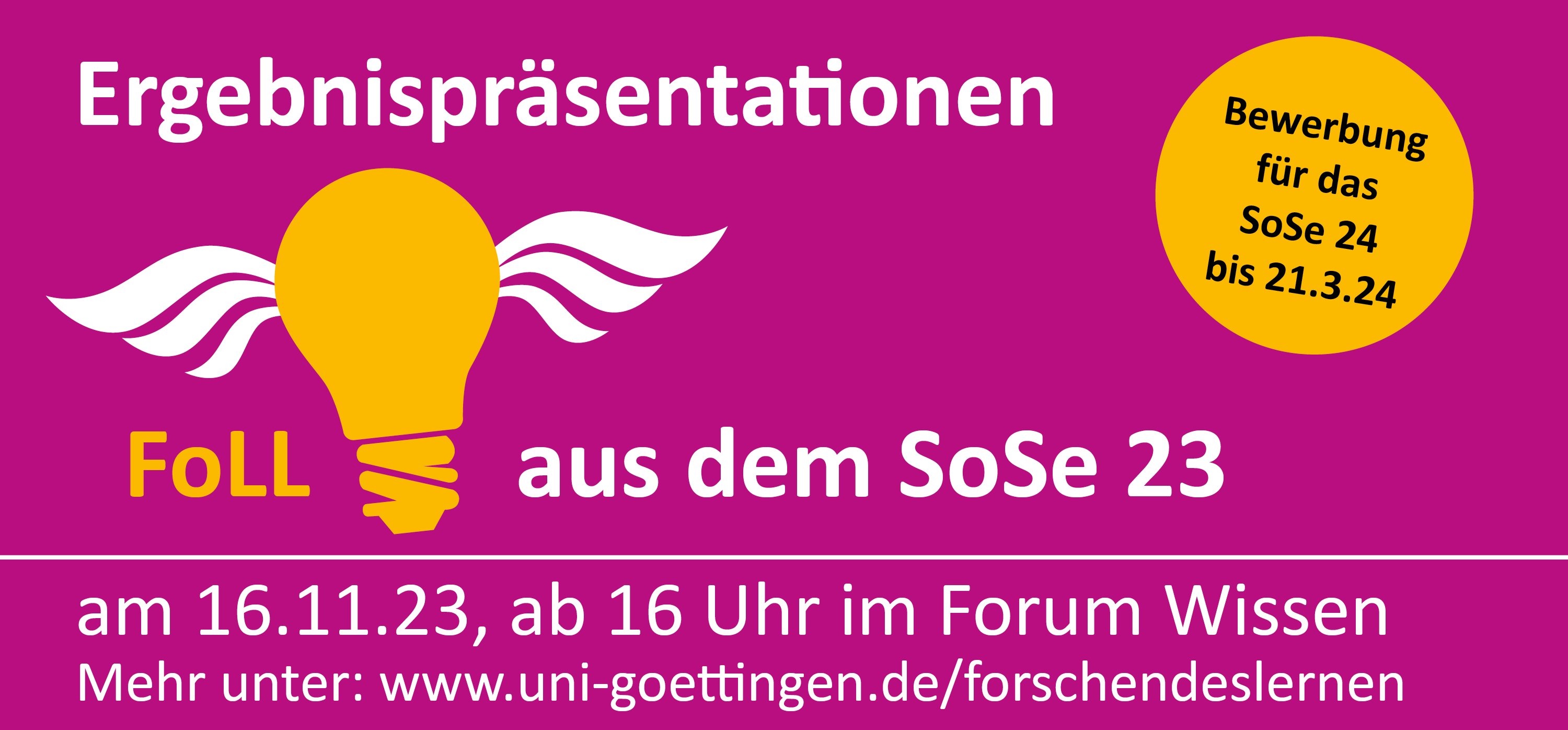 Am 16. November findet das nächste Event vom „Forschungsorientiertes Lehren und Lernen“ (FoLL) bei uns im Forum Wissen statt. Das einzigartige Programm der Georg-August-Universität Göttingen bietet Studierenden die Möglichkeit ein Semester lang im Team eine eigene Forschungsfrage zu bearbeiten.