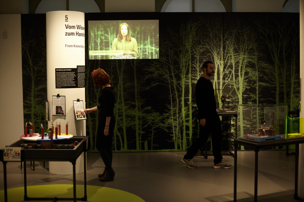 All dies macht die Sonderausstellung „Digitaler Wald / Digital Forest“ auf 80 Quadratmeter Ausstellungsfläche sichtbar und erlebbar. Sie zeigt dabei, wie Klimaforschung im Ökosystem Wald digital funktioniert. Gleichzeitig regt die Ausstellung die Besucherinnen und Besucher an, darüber nachzudenken, was jede und jeder einzelne in Sachen Klimaschutz tun kann. Eine Reise in virtueller Realität führt sie mitten hinein in die Forschungsstation im Nationalpark Hainich und macht so moderne Feldforschung im Wald begreifbar. Gerahmt wird dieses immersive Erlebnis von ganz realen Objekten wie z. B. Messgeräten, informativen Grafiken, spielerischen Hands-on-Stationen und vielfältigen Stimmen aus der Forschung. Denn auch aus dem digitalen Wald schallt es genau so, wie sprichwörtlich in ihn hineingerufen wird. Aktuelle Positionen aus Waldschutz, Klima-Aktivismus und Klima-Politik sollen zum Denken über das eigene Handeln anregen und den so wichtigen Dialog über die Klimakrise fortschreiben, der zwischen Wissenschaft und Gesellschaft notwendig ist.